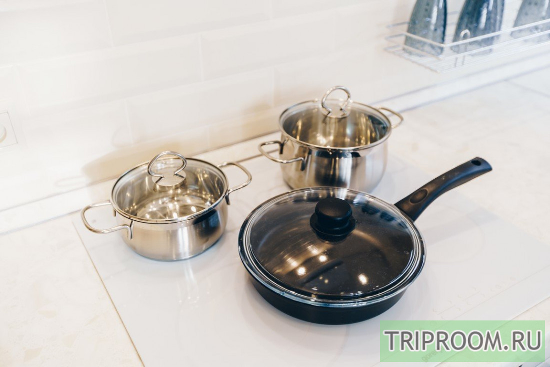 🍽 Кухня оснащена всеми необходимыми бытовыми приборами (холодильник, микроволновка, электрический чайник) и столовыми принадлежностями (кастрюли, сковорода, кружки, тарелки, столовые приборы).