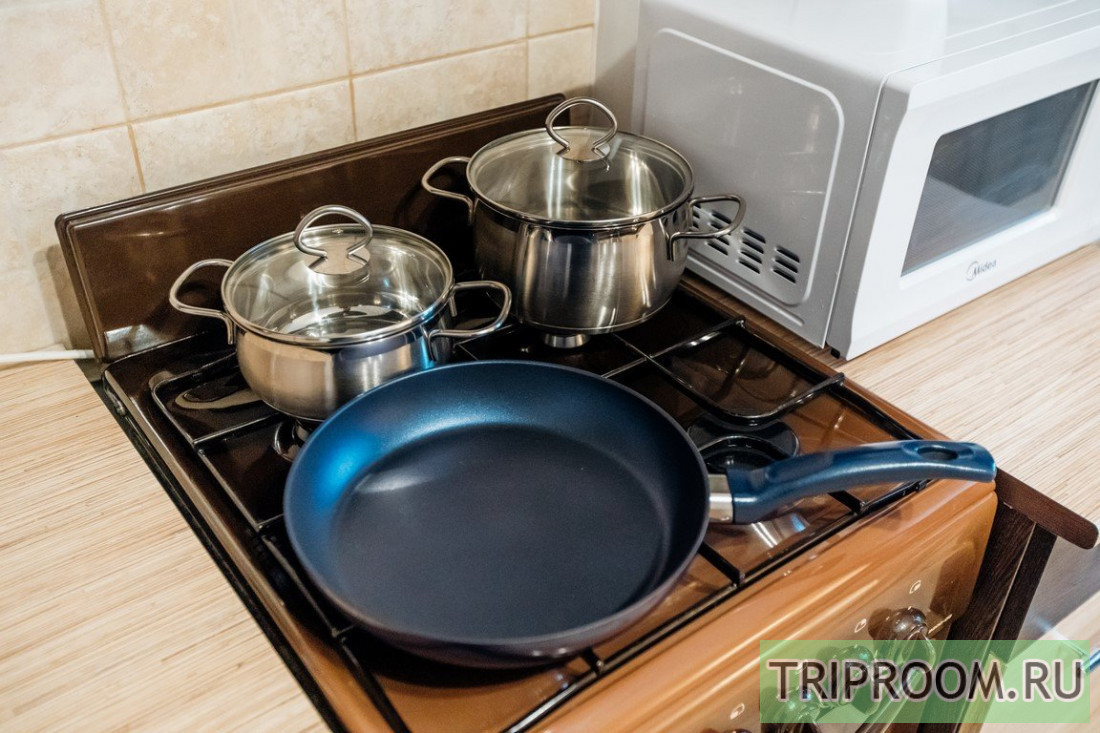 🍽 Кухня оснащена всеми необходимыми бытовыми приборами (холодильник, микроволновка, электрический чайник) и столовыми принадлежностями (кастрюли, сковорода, кружки, тарелки, столовые приборы).