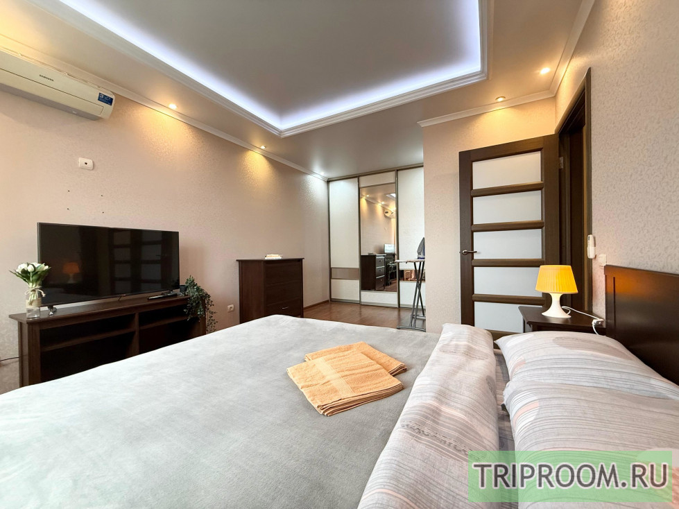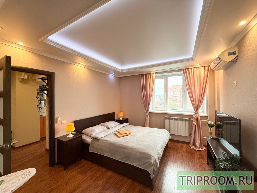 ❗️ В квартире современная мебель, новая сантехника, натяжные потолки, стеклопакеты, хорошая шумоизоляция, панорамное окно в пол, кондиционер, фен, утюг, гладильная доска, сушилка для белья, стиральная машина. Есть все необходимое для проживания. В Вашем распоряжении: большая двуспальная кровать 🛌
