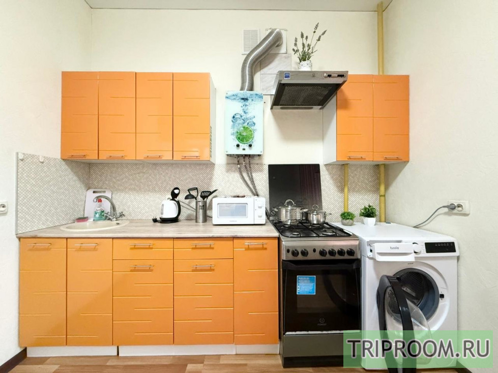 Кухня полностью оборудована для приготовления любимых блюд: здесь есть холодильник, микроволновая печь, электрический чайник, духовка 🍳, а также весь необходимый набор посуды — кастрюли, сковороды, кружки, тарелки и столовые приборы. Для вашего удобства в квартире также имеются стиральная машина, утюг и фен.