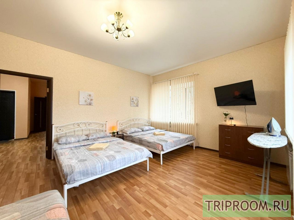 В вашем распоряжении — всё необходимое для комфортного проживания. В квартире установлены 2 телевизора со Smart TV 📺, а также размещены 4 удобные кровати: 3 кровати размером 140 × 200 см и 1 кровать размером 160 × 200 см. Все кровати оснащены ортопедическими матрасами, которые обеспечат вам здоровый и крепкий сон 🛌.