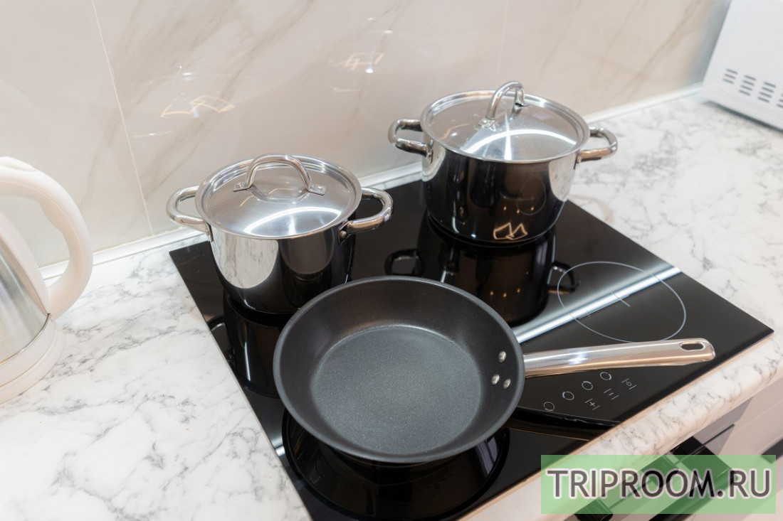 🍽 Кухня оснащена всеми необходимыми бытовыми приборами (холодильник, микроволновка, электрический чайник, духовка) и столовыми принадлежностями (кастрюли, сковорода, кружки, тарелки, столовые приборы).